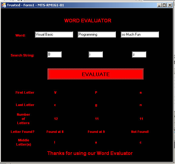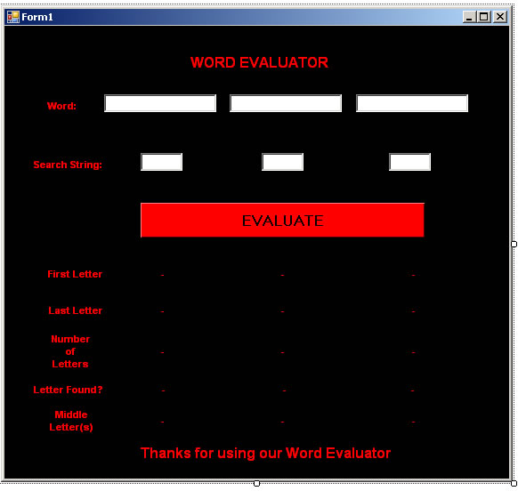 the above program, so that when the user clicks EVALUATE all the blank labels